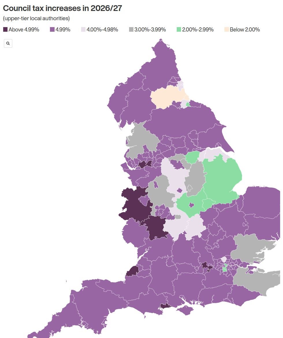 Mapped: All confirmed top-tier council tax rises in England for the 2026/27 financial year