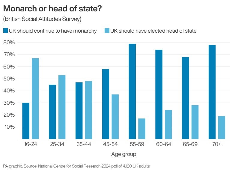 Natcen Research Director Alex Scholes said: “Support to the monarchy is the lowest level since our records began, more people than ever before.