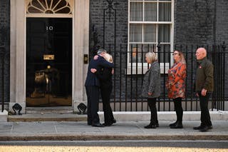 Keir Starmer (L) meets Margaret Aspinall (R) at 10 Download Street